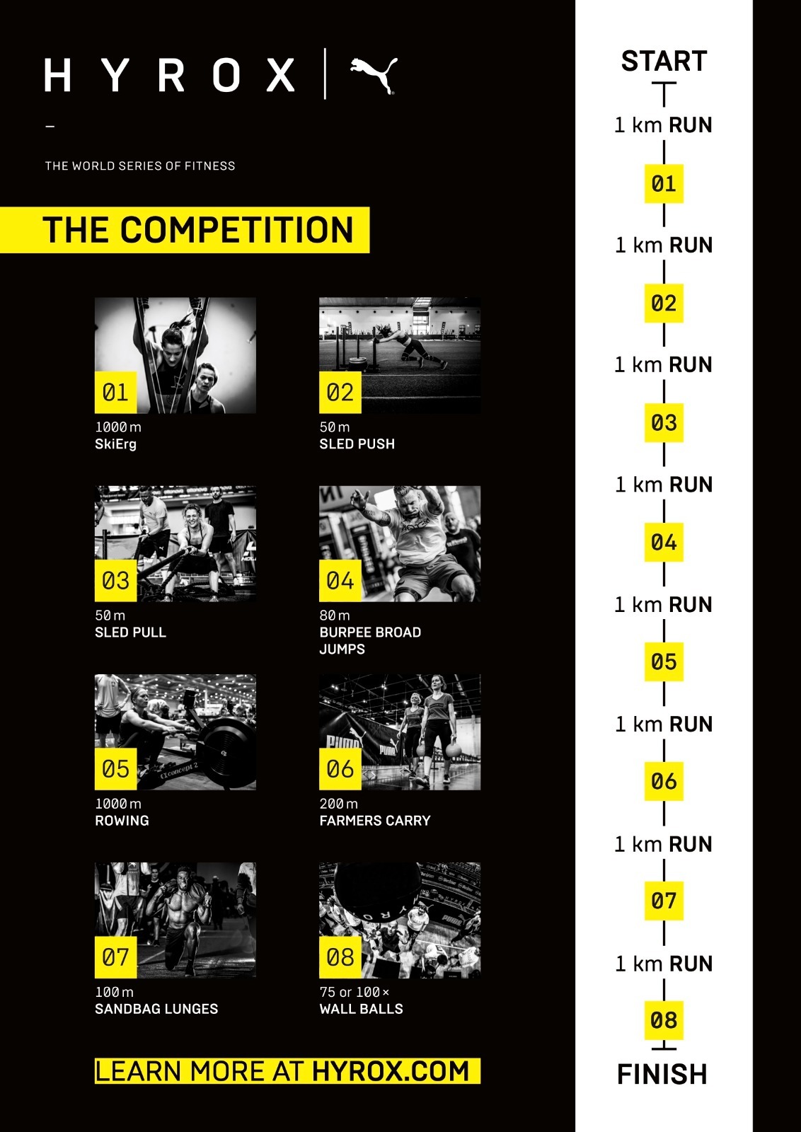 Bei den Übungen wie Rudern, SkiErg, Schlitten schieben und ziehen, Wall Balls werfen, Burpees, Laufen und Lunges können alle Teilnehmer*innen über sich hinauswachsen. Jeder kann es schaffen und die Magie dieses Sports erleben, besonders in der Gruppe macht es oft am meisten Spaß. HYROX kombiniert Ausdauer- und Krafttraining perfekt.